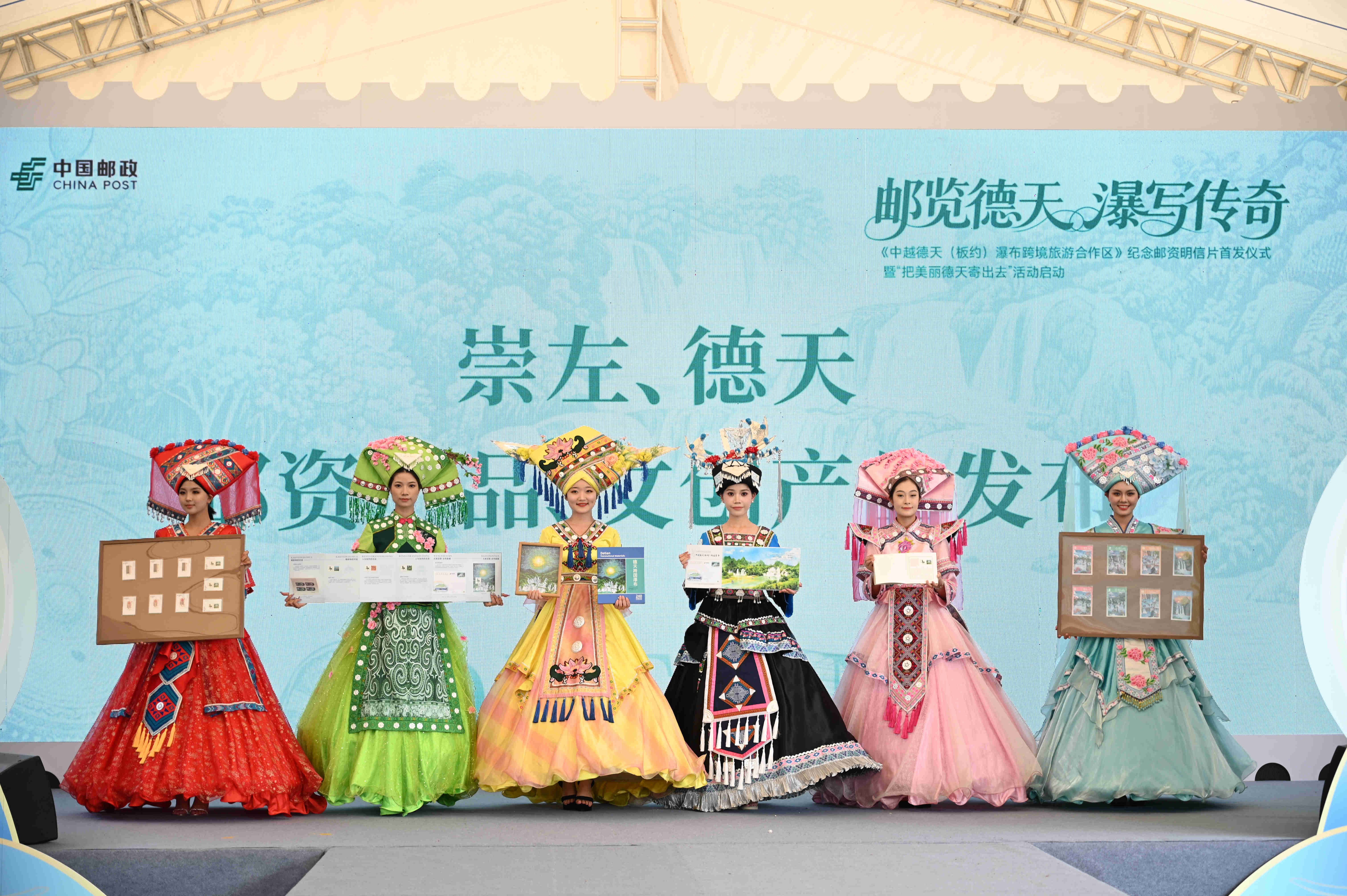 9月15日,《中越德天(板約)瀑布跨境旅遊合作區》紀念郵資明信片首(shǒu)發(fā)儀式暨“把美麗德(dé)天(tiān)寄出去”活動在(zài)中旅國際(jì)所(suǒ)屬德天景區正式(shì)啟動,現場發布(bù)紀念郵資(zī)明(míng)信(xìn)片等係列文(wén)創產品。