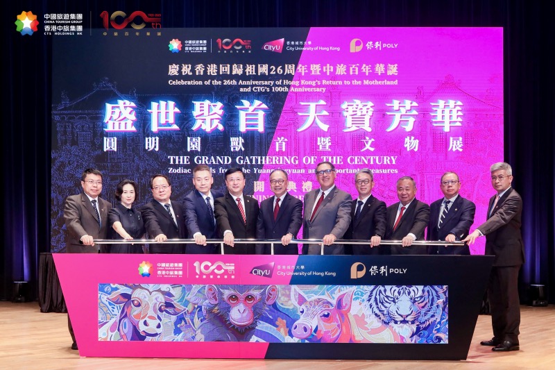 7月3日,“盛世聚首 天寶芳華---慶(qìng)祝香港回歸祖國26周(zhōu)年暨中旅百年華誕圓明園國寶獸首文物展(zhǎn)開幕典禮(lǐ)”在香港城市大學順利舉行。來自國家有關部委領導、香港特區政府有關官員、港澳地區各界精英、賢達名流、中國旅遊集團合作夥伴、旅遊同業等約三百人出席盛事,見證了這一難忘時刻。
