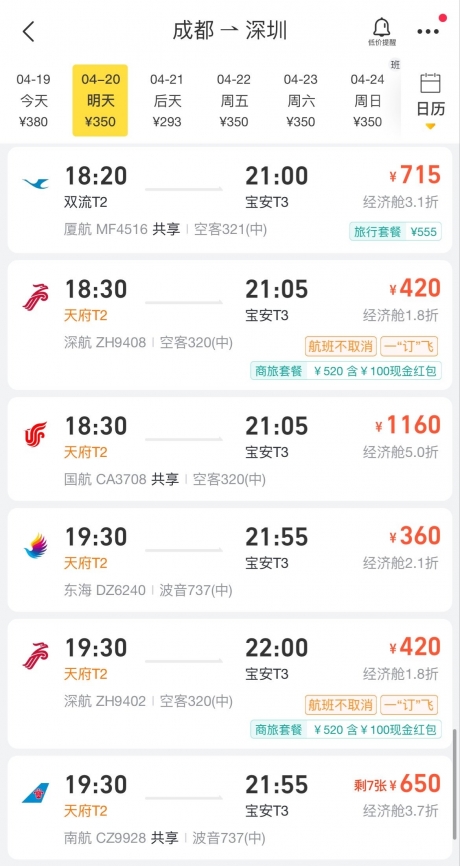 (圖:飛豬App上可(kě)預訂深圳航空(kōng)、四川航空“一訂飛”“訂就飛”航班)
