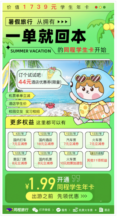 同程旅行(háng):暑期正當時,1.99元同(tóng)程學生卡重磅返場